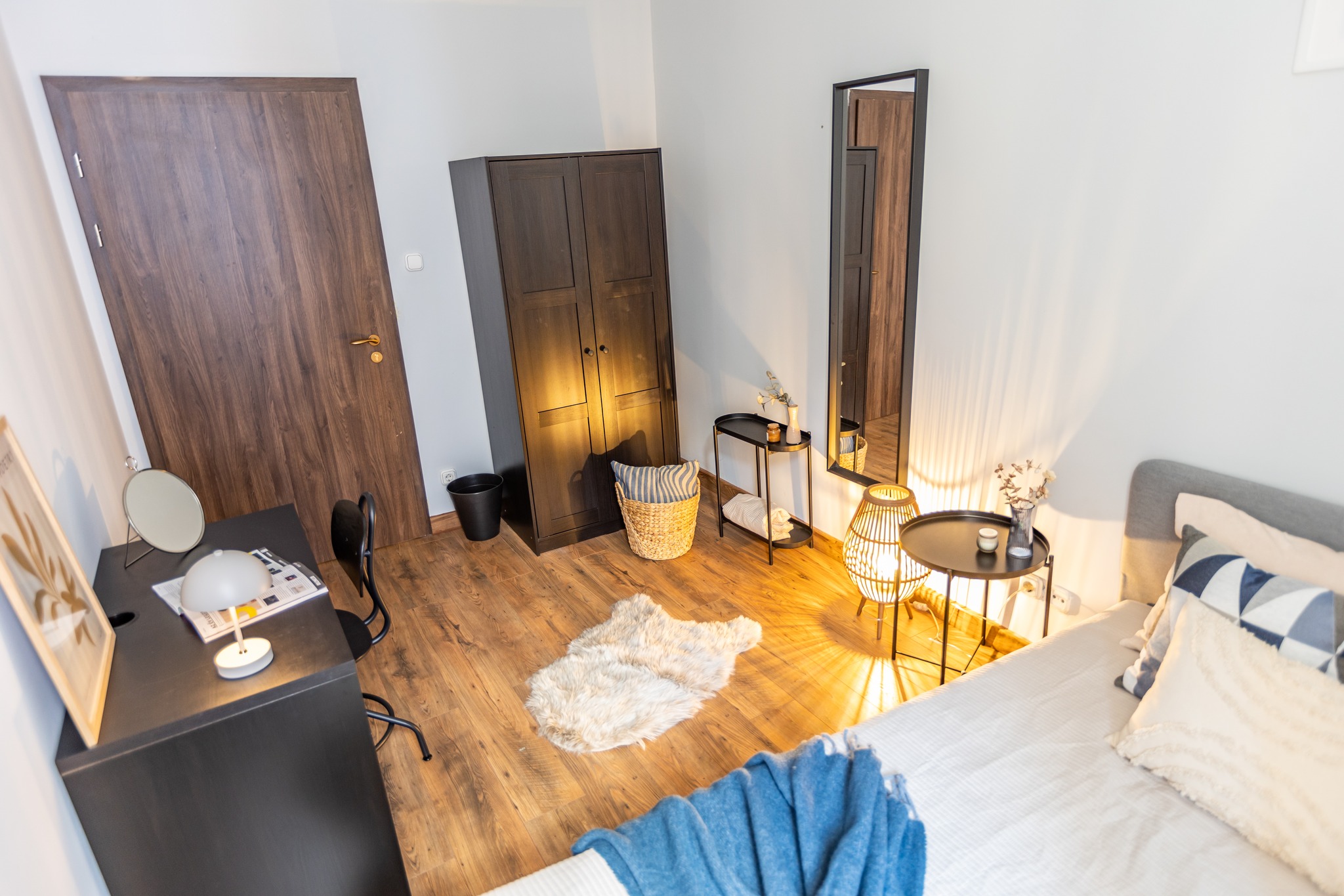 The apartment features 5 generously sized bedrooms, each furnished with a bed, desk, chair, and wardrobe—ready for move-in. The 2 modern bathrooms and huge, open-concept kitchen make daily life smooth and convenient, whether you’re cooking together, working from home, or relaxing after a long day. The kitchen is fully equipped with all essential appliances, including a refrigerator, oven, microwave, and washing machine. The layout is designed for both privacy and social living, giving each tenant their own space while also offering comfortable shared areas.